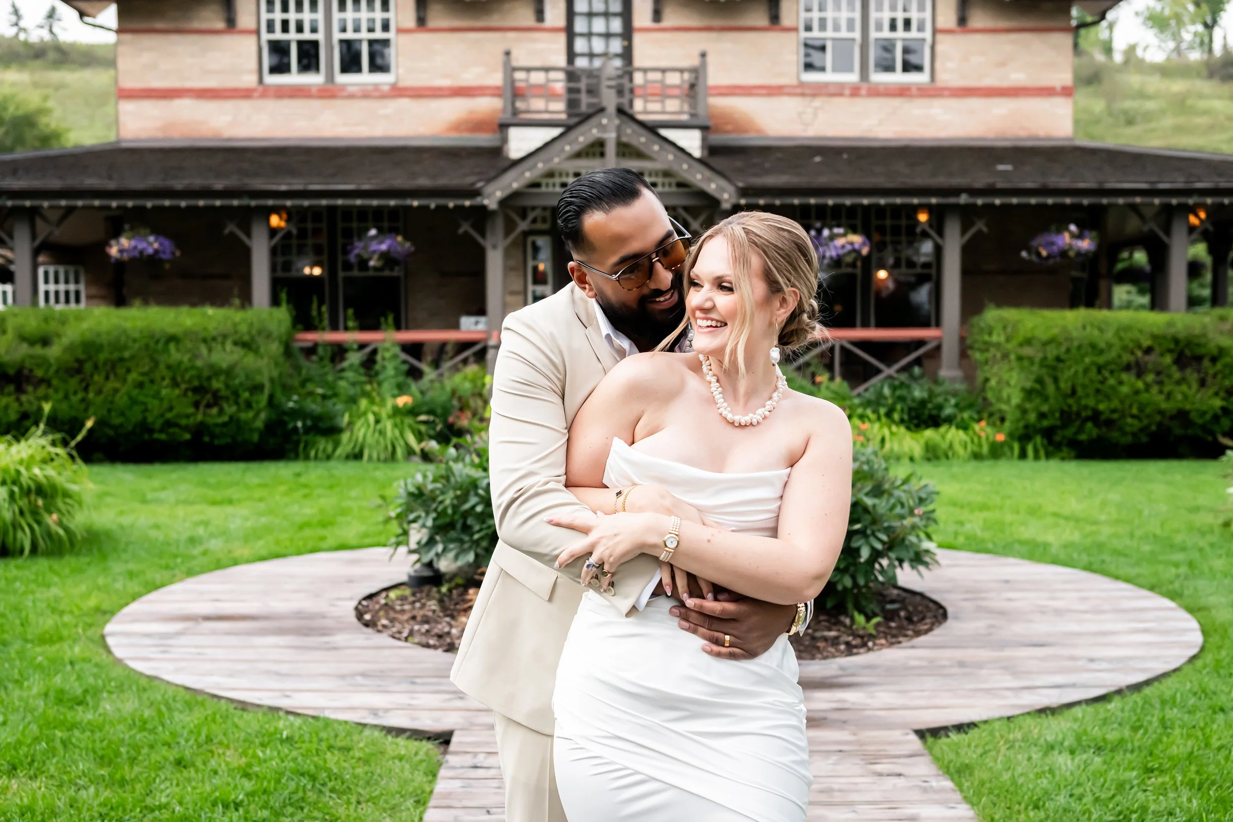 Outdoors, the manicured garden is beautifully maintained and offers several layout options for ceremonies, including a west-facing orientation that frames your vows with the lush greenery of Fish Creek Park.